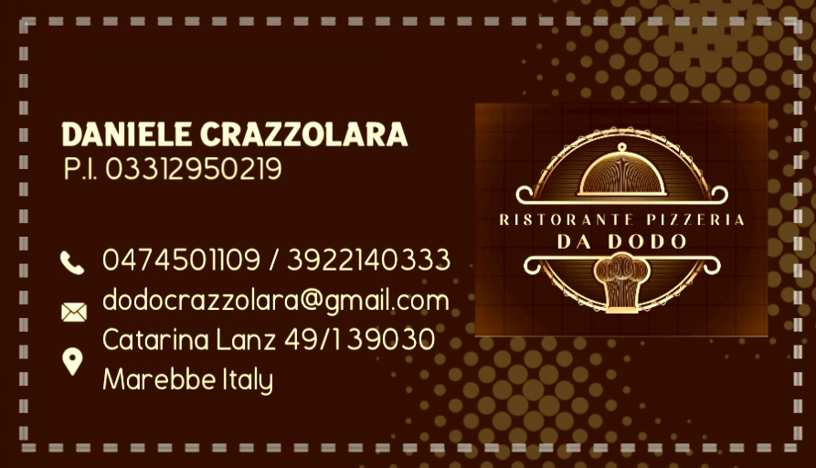 Da Dodo Ristorante Pizzeria è un'azienda Marebbana che unisce il lusso moderno alla tradizione culinaria italiana. Con una vasta gamma di piatti esclusivi e autentici, garantiamo un'esperienza culinaria indimenticabile per ogni cliente.